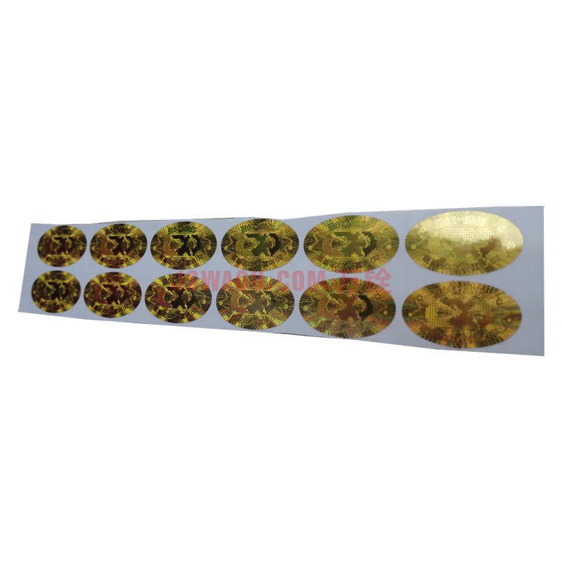 金色激光防偽標簽一般有亮銀或亮金兩種顏色材質,其他顏色或材質可根據產品特性及使用條件進行定制。